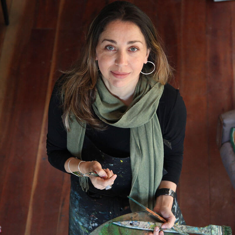 Mora em Curitiba. É artista plástica, ilustradora e orientadora de artes. Adora ilustrar livros, criar personagens, pensar em suas características, sonhos e medos.